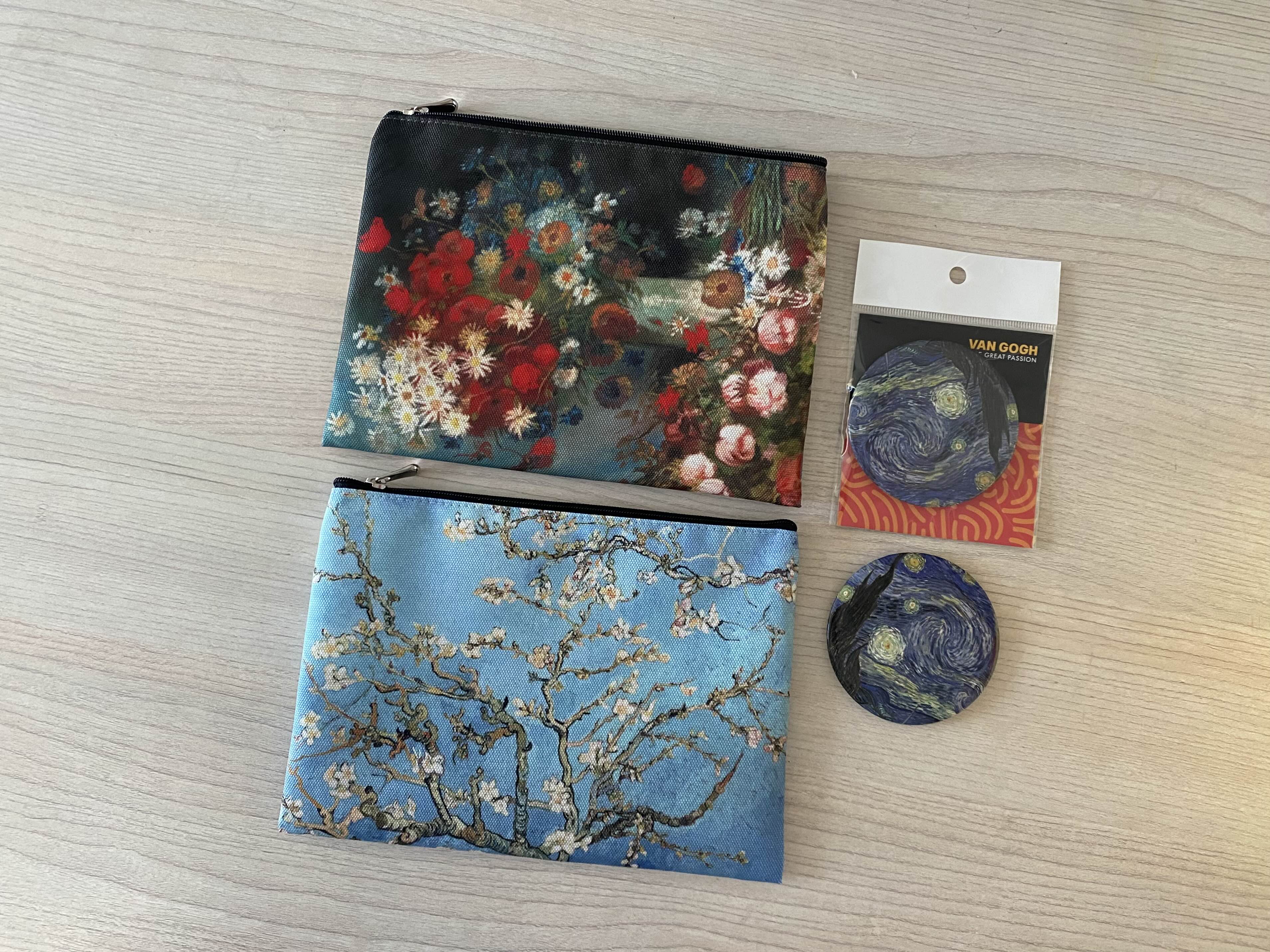 아이는 <별이 빛나는 밤> 그림의 거울을 샀다. 엄마는 <들꽃과 장미가 있는 정물> 그림의 파우치와 <별이 빛나는 밤> 그림의 거울을 샀다. 각자의 취향대로 기념품을 골라서 추억을 남겼다.